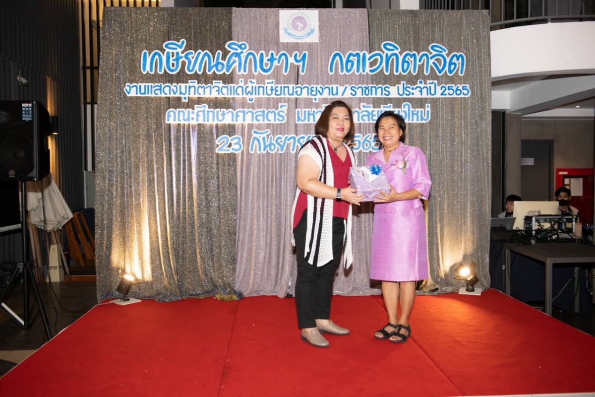 เมื่อวันที่ 23 กันยายน 2565 ผู้บริหาร คณาจารย์ บุคลากร และนักศึกษา คณะศึกษาศาสตร์ มหาวิทยาลัยเชียงใหม่ ร่วมกันจัดงานมุทิตาจิตแด่ผู้เกษียณอายุงาน/ราชการ และผู้เปลี่ยนแปลงเส้นทางชีวิตราชการ/งาน ประจำปี 2565 "มุทิตาศึกษา กษิณาลัย" เพื่อเป็นการแสดงมุทิตาจิตแด่ผู้ที่ปฏิบัติหน้าที่ทำคุณประโยชน์แก่คณะศึกษาศาสตร์มาโดยตลอด ด้วยความระลึกถึงคุณูปการที่ท่านได้อุทิศ ทุ่มเท และเสียสละต่อหน้าที่ระหว่างการปฏิบัติงานมาโดยตลอด จำนวน 8 ท่าน ได้แก่