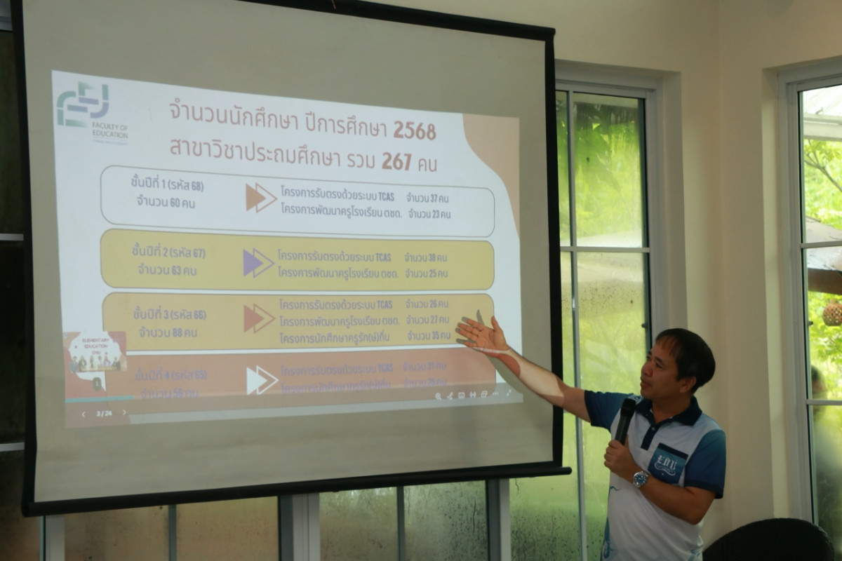 เมื่อวันที่ 22 สิงหาคน 2568 ผู้ช่วยศาสตราจารย์ ดร. ทิพย์รัตน์ นพฤทธิ์ คณบดีคณะศึกษาศาสตร์ เป็นประธานในพิธีเปิดการสัมมนาคณาจารย์และเจ้าหน้าที่ภาควิชาหลักสูตร การสอนและการเรียนรู้ ประจำปี 2568 โดยมีผู้ช่วยศาสตราจารย์ ดร.สิระ สมนาม หัวหน้าภาควิชาหลักสูตร การสอนและการเรียนรู้ เป็นประธานกล่าวต้อนรับ ซึ่งกิจกรรมดังกล่าวมีวัตถุประสงค์ เพื่อร่วมกันหาแนวทางในการพัฒนาประสิทธิภาพการบริหารจัดการภาควิชาหลักสูตร การสอนและการเรียนรู้ และเพื่อให้คณาจารย์ได้แลกเปลี่ยนเรียนรู้เกี่ยวกับแนวคิดในด้านต่างๆ จากทุกสาขาวิชา โดยกิจกรรมภายในงานประกอบด้วย การทบทวนผลการดำเนินงานในปีงบประมาณ 2568 และนำเสนอแผนพัฒนาในปีงบประมาณ 2569 ของทั้ง 12 สาขาวิชา การนำเสนอข้อมูลปัจจุบันของภาควิชา และร่วมรับประทานอาหารเย็นร่วมกัน ณ เป้อ-หละ-เหม้อ คาเฟ่