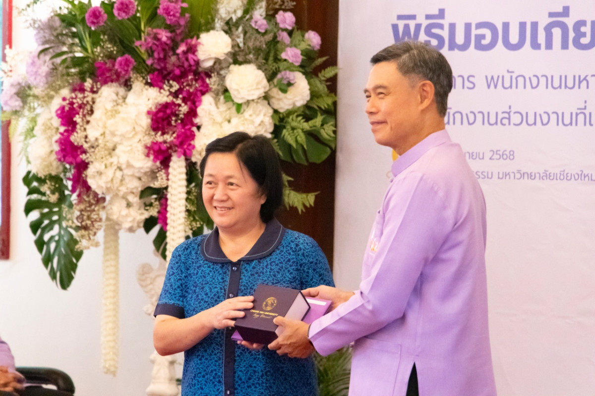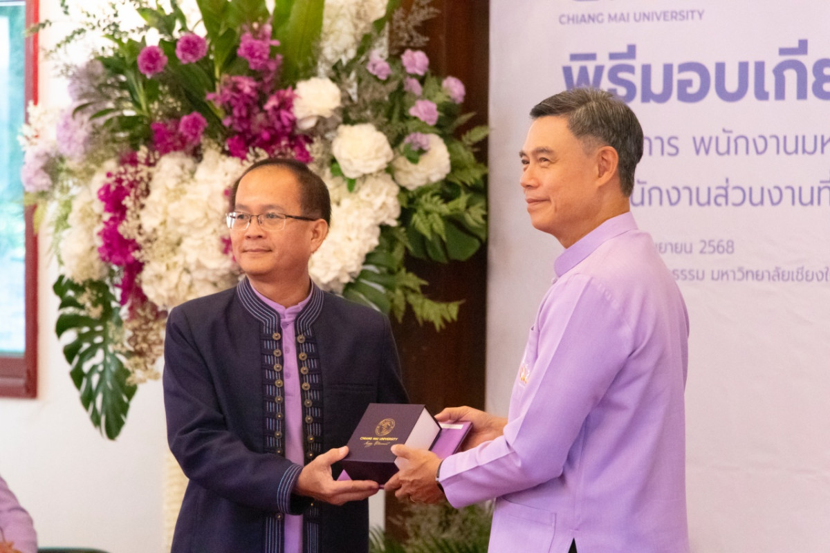 เมื่อวันที่ 17 กันยายน 2568 ผู้ช่วยศาสตราจารย์ ดร. ทิพย์รัตน์ นพฤทธิ์ คณบดีคณะศึกษาศาสตร์ นำผู้บริหารและเจ้าหน้าที่คณะศึกษาศาสตร์ มหาวิทยาลัยเชียงใหม่ ร่วมแสดงมุทิตาจิตแก่ผู้เกษียณอายุราชการในส่วนของคณะศึกษาศาสตร์ ประจำปี 2568 ใน "พิธีมอบเกียรติบัตรและกล่าวแสดงมุทิตาจิต แก่ข้าราชการ พนักงานมหาวิทยาลัย ลูกจ้างประจำ และพนักงานส่วนงานที่เกษียณอายุราชการ ประจำปี 2568" จัดโดยกองบริหารงานบุคคล สำนักงานมหาวิทยาลัย มหาวิทยาลัยเชียงใหม่ เพื่อเชิดชูเกียรติ และระลึกถึงคุณงามความดี ที่ได้อุทิศตนปฏิบัติหน้าที่ด้วยแรงกาย แรงใจ มีความมานะ อุตสาหะ พากเพียรพยายาม มุ่งมั่นสรรค์สร้างและพัฒนามหาวิทยาลัยเชียงใหม่ตลอดมา โดยมี ศาสตราจารย์ ดร. นายแพทย์พงษ์รักษ์ ศรีบัณฑิตมงคล อธิการบดีมหาวิทยาลัยเชียงใหม่ เป็นประธานในพิธีฯ ณ ศาลาธรรม มหาวิทยาลัยเชียงใหม่