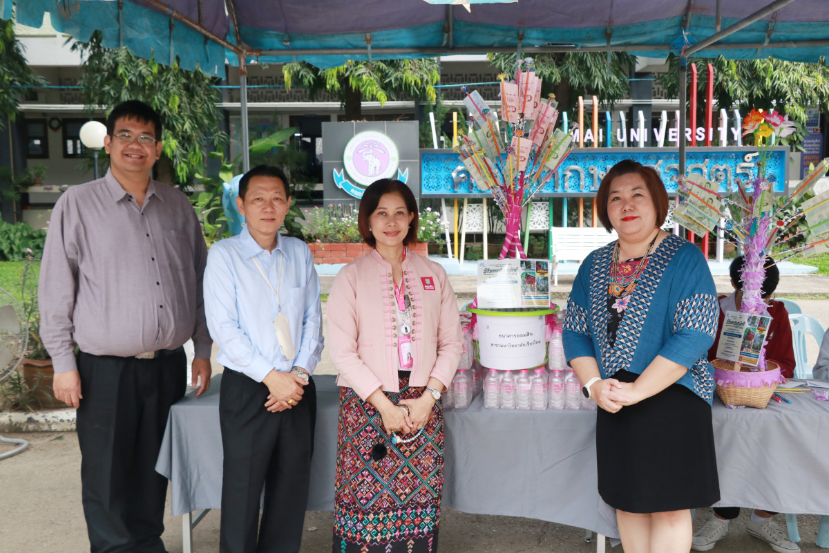 ธนาคารออมสิน สาขามหาวิทยาลัยเชียงใหม่ ได้ร่วมทำบุญมอบเงินปัจจัยจำนวน 1,370 บาท พร้อมด้วยน้ำดื่ม 15 แพ๊ค และกระปุกออมสิน 7 กระปุก โดยมี ผู้ช่วยศาสตราจารย์ ดร. ทิพย์รัตน์ นพฤทธิ์ คณบดีคณะศึกษาศาสตร์ เป็นผู้รับมอบ
