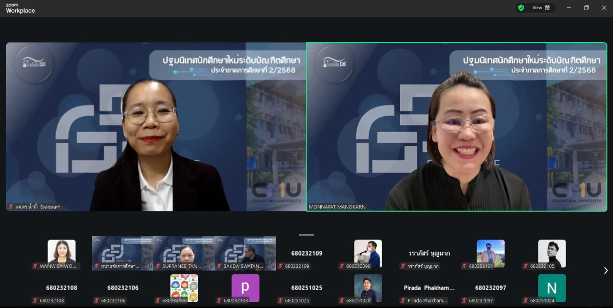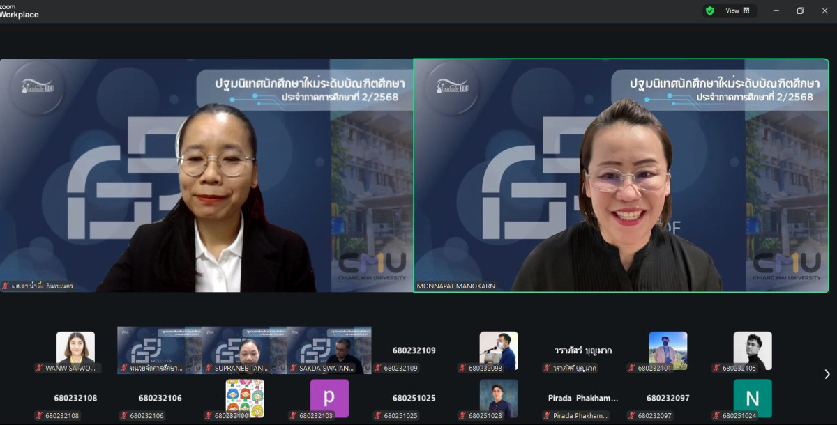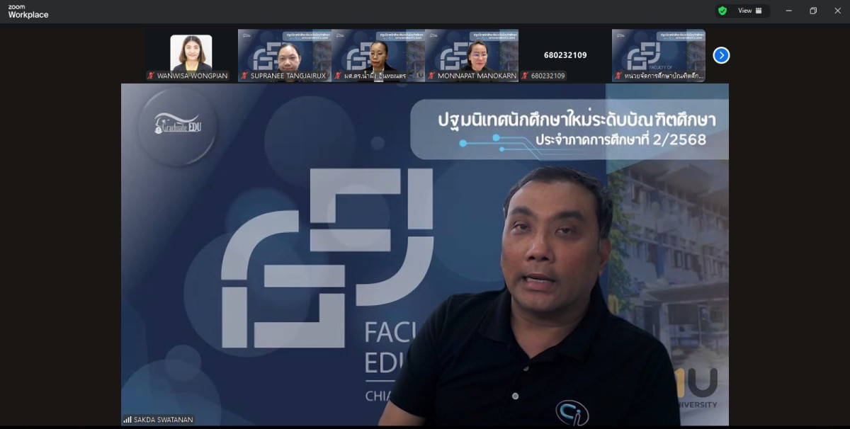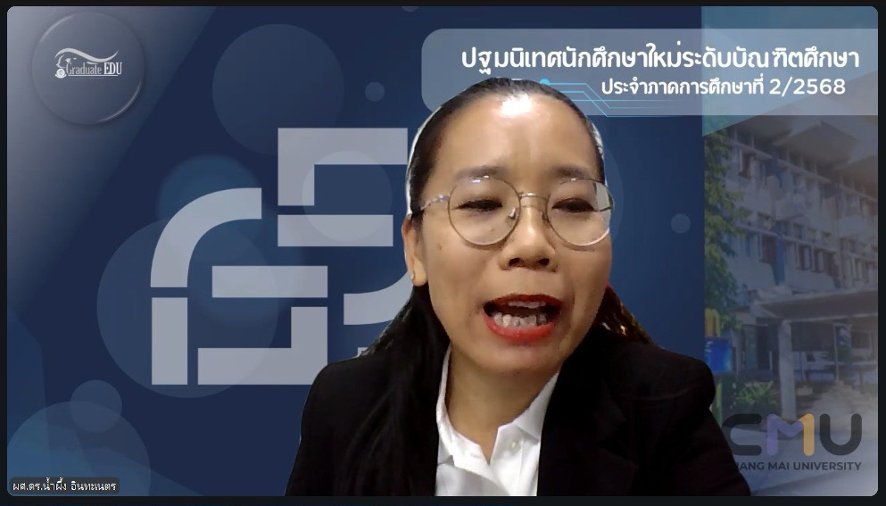 เมื่อวันที่ 13 พฤศจิกายน 2568 ผู้ช่วยศาสตราจารย์ ดร. น้ำผึ้ง อินทะเนตร รองคณบดีคณะศึกษาศาสตร์ มหาวิทยาลัยเชียงใหม่ กล่าวต้อนรับและแสดงความยินดีกับนักศึกษา พร้อมทั้งแนะนำคณะศึกษาศาสตร์ ผู้บริหารคณะศึกษาศาสตร์ หัวหน้าภาควิชา และคณาจารย์สาขาวิชาต่างๆ ในกิจกรรมการปฐมนิเทศนักศึกษาใหม่ ระดับบัณฑิตศึกษา ประจำภาคการศึกษาที่ 2 ปีการศึกษา 2568 ที่จัดขึ้นเพื่อให้นักศึกษาใหม่ระดับบัณฑิตศึกษา ได้รับทราบถึงการบริหารงานของคณะฯ การจัดการศึกษา ระบบการเรียนการสอน กฎ ระเบียบ ข้อบังคับที่นักศึกษาควรทราบ รวมถึงคำแนะนำทางการศึกษา กิจกรรมเสริมหลักสูตร และทุนการศึกษา ผ่านระบบ ZOOM Cloud Meetings
