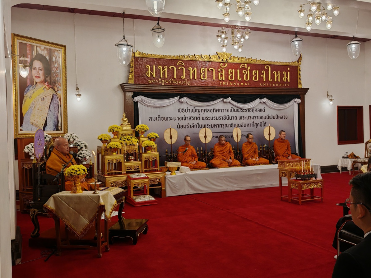 เมื่อวันเสาร์ที่ 29 พฤศจิกายน 2568 อาจารย์ ดร. ชัยณรงค์ จารุพงศ์พัฒนะ ผู้ช่วยคณบดี และ นายอินทร ปันทา เลขานุการคณะ นำอาจารย์และเจ้าหน้าที่คณะศึกษาศาสตร์ มหาวิทยาลัยเชียงใหม่ ร่วมพิธีบำเพ็ญกุศลอุทิศถวายเป็นพระราชกุศล แด่สมเด็จพระนางเจ้าสิริกิติ์ พระบรมราชินีนาถ พระบรมราชชนนีพันปีหลวง น้อมรำลึกในพระมหากรุณาธิคุณอันหาที่สุดมิได้ โดยมี พระเทพวชิราธิบดี (ฤทธิรงค์ ญาณวโร) เจ้าคณะภาค 6-7 (ธรรมยุต) และเจ้าอาวาสวัดป่าดาราภิรมย์ พระอารามหลวง จังหวัดเชียงใหม่ เป็นองค์แสดงพระธรรมเทศนา ณ ศาลาธรรม มหาวิทยาลัยเชียงใหม่