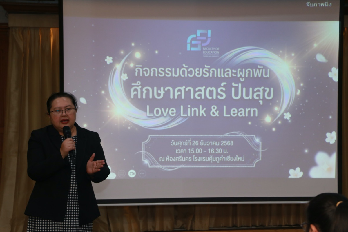 เมื่อวันศุกร์ที่ 26 ธันวาคม 2568 คณะศึกษาศาสตร์ มหาวิทยาลัยเชียงใหม่ ได้จัดกิจกรรมภายใต้ชื่อ "ด้วยรักและผูกพัน ศึกษาศาสตร์ ปันสุข (Love Link & Learn)" ณ ห้องศรีนคร โรงแรมคุ้มภูคำเชียงใหม่