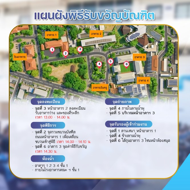 6. ขอเชิญรับชมการถ่ายทอดสดพิธีพระราชทานปริญญาบัตร ณ ห้องประชุม 40 ปี (ไม่มีการถ่ายทอดสดผ่านช่องทาง Online)