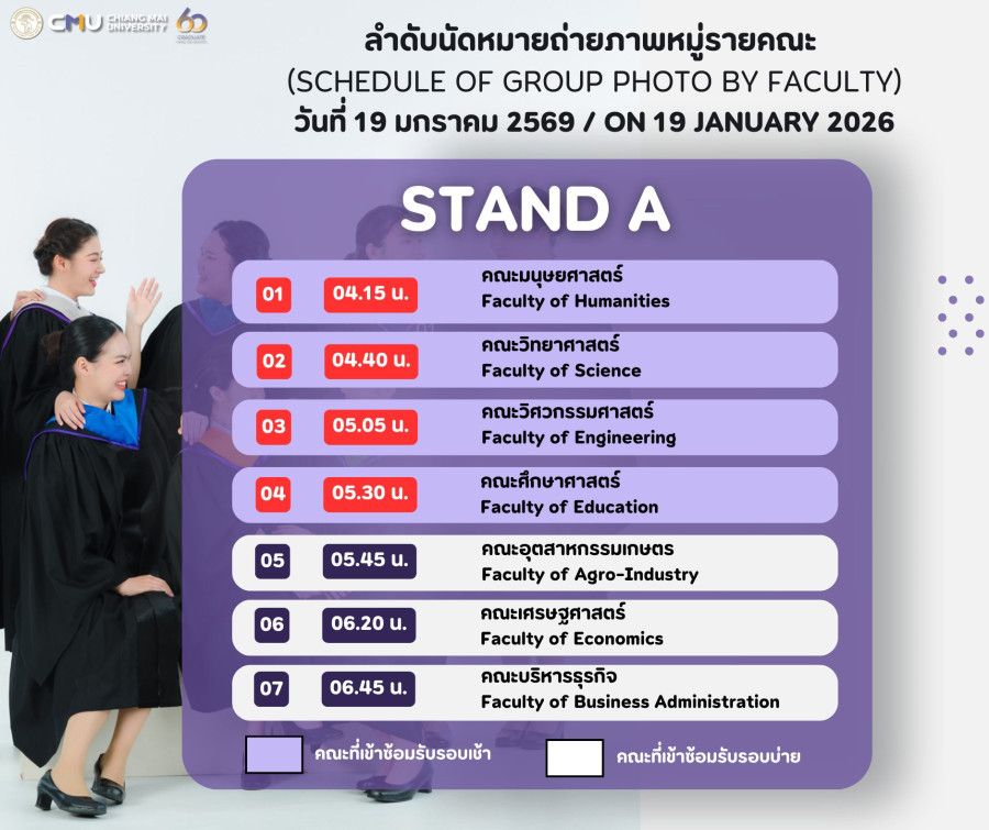 3. การนัดหมายถ่ายภาพหมู่รายคณะ สำหรับบัณฑิตมหาวิทยาลัยเชียงใหม่ รุ่นที่ 60