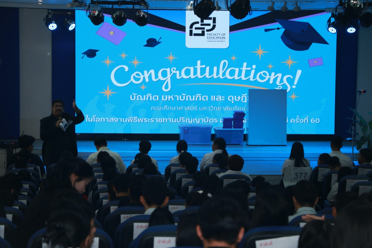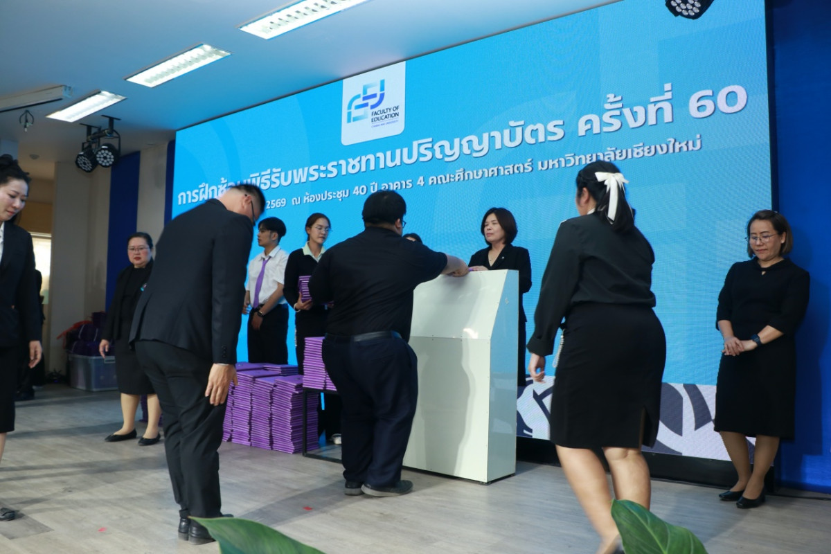 เมื่อวันที่ 18 มกราคม 2569 ผู้บริหาร และคณาจารย์ คณะศึกษาศาสตร์ มหาวิทยาลัยเชียงใหม่ ร่วมฝึกซ้อมพิธีพระราชทาน ปริญญาบัตร ให้แก่ ดุษฎีบัณฑิต มหาบัณฑิต และบัณฑิตคณะศึกษาศาสตร์ ที่เข้าร่วมพิธีพระราชทานปริญญาบัตร มหาวิทยาลัยเชียงใหม่ ครั้งที่ 60 โดยมี ผู้ช่วยศาสตราจารย์ ดร.ทิพย์รัตน์ นพฤทธิ์ คณบดีคณะศึกษาศาสตร์ กล่าวต้อนรับ ณ ห้องประชุม 40 ปี คณะศึกษาศาสตร์ มหาวิทยาลัยเชียงใหม่