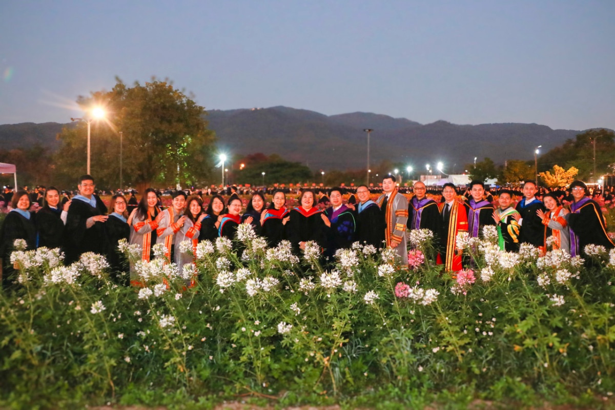 ผู้ช่วยศาสตราจารย์ ดร.ทิพย์รัตน์ นพฤทธิ์ คณบดีคณะศึกษาศาสตร์ นำผู้บริหาร และคณาจารย์ ร่วมบันทึกภาพหมู่กับ ดุษฎีบัณฑิต มหาบัณฑิต และบัณฑิตคณะศึกษาศาสตร์ มช. ในโอกาสพิธีพระราชทานปริญญาบัตร มหาวิทยาลัยเชียงใหม่ ครั้งที่ 60 เมื่อวันที่ 19 มกราคม 2569 เวลา 05.30 น. ณ Stand A ไร่ฟอร์ด มหาวิทยาลัยเชียงใหม่