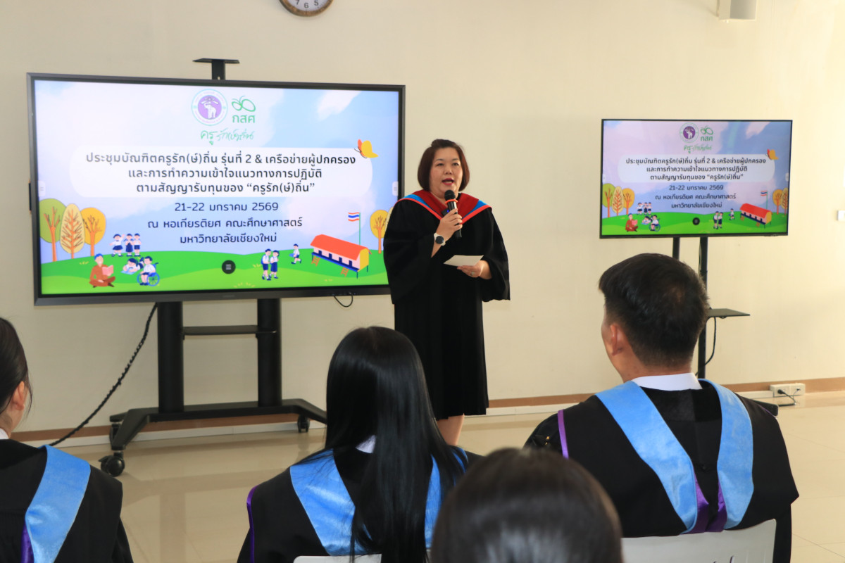 เมื่อวันที่ 22 มกราคม 2569 ผู้ช่วยศาสตราจารย์ ดร. ทิพย์รัตน์ นพฤทธิ์ คณบดีคณะศึกษาศาสตร์ พร้อมด้วยคณาจารย์สาขาวิชาประถมศึกษา คณะศึกษาศาสตร์ มหาวิทยาลัยเชียงใหม่ ให้การต้อนรับบัณฑิตครูรัก(ษ์)ถิ่น มหาวิทยาลัยเชียงใหม่ รุ่นที่ 2 และผู้ปกครอง ในโอกาสเข้าร่วมการประชุมเพื่อสร้างความเข้าใจเกี่ยวกับแนวทางปฏิบัติตามสัญญารับทุน ซึ่งจัดโดย กองทุนเพื่อความเสมอภาคทางการศึกษา (กสศ.) ณ หอเกียรติยศ (Hall of Fame) คณะศึกษาศาสตร์ มหาวิทยาลัยเชียงใหม่