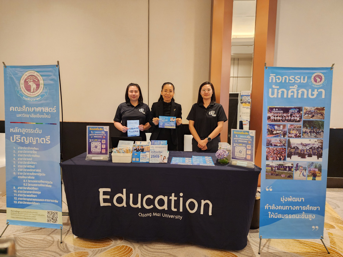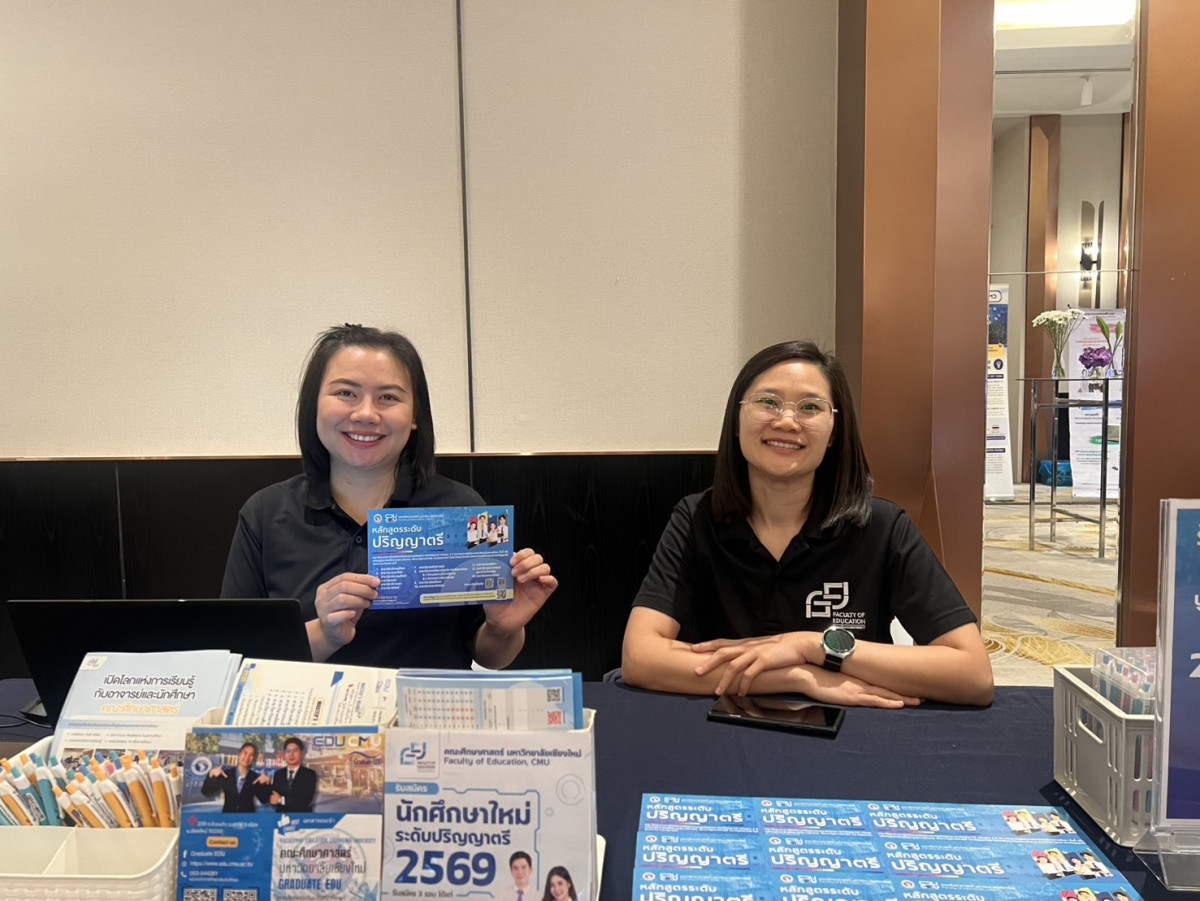 ผู้ช่วยศาสตราจารย์ ดร. น้ำผึ้ง อินทะเนตร รองคณบดี พร้อมด้วยเจ้าหน้าที่หน่วยทะเบียนปริญญาตรี คณะศึกษาศาสตร์ มหาวิทยาลัยเชียงใหม่ ร่วมจัดบูธประชาสัมพันธ์คณะ ในโครงการประชุมทางวิชาการสำหรับรองผู้อำนวยการฝ่ายวิชาการและอาจารย์แนะแนวของโรงเรียนมัธยมศึกษาในเขตพัฒนาภาคเหนือ 17 จังหวัด ภายใต้หัวข้อ “การรับสมัครคัดเลือกบุคคลเข้าศึกษาในมหาวิทยาลัยเชียงใหม่ TCAS รอบที่ 2 โควตา (Quota) ระดับปริญญาตรี ปีการศึกษา 2569” เพื่อเสริมสร้างความเข้าใจเกี่ยวกับนโยบายและกระบวนการรับสมัคร ตลอดจนสร้างความร่วมมือด้านการรับสมัครกับสถานศึกษา