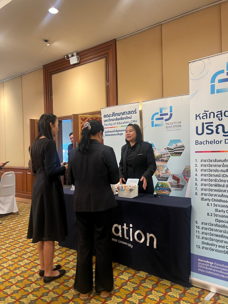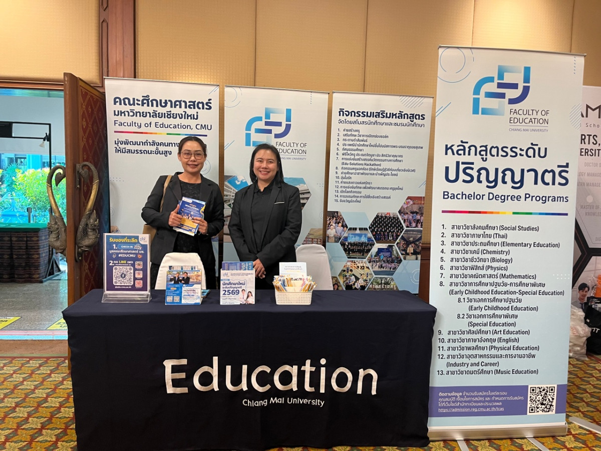 คณะศึกษาศาสตร์ มหาวิทยาลัยเชียงใหม่ ประสบความสำเร็จในการเดินสายสร้างความเข้าใจระบบการรับสมัครนักศึกษาใหม่ โดย ผู้ช่วยศาสตราจารย์ ดร. น้ำผึ้ง อินทะเนตร รองคณบดี พร้อมด้วยเจ้าหน้าที่หน่วยทะเบียนปริญญาตรี ได้เดินทางเข้าร่วมจัดบูธประชาสัมพันธ์หลักสูตรเชิงรุก ในโครงการประชุมทางวิชาการสำหรับรองผู้อำนวยการฝ่ายวิชาการและอาจารย์แนะแนวของโรงเรียนมัธยมศึกษาในเขตพัฒนาภาคเหนือ 17 จังหวัด