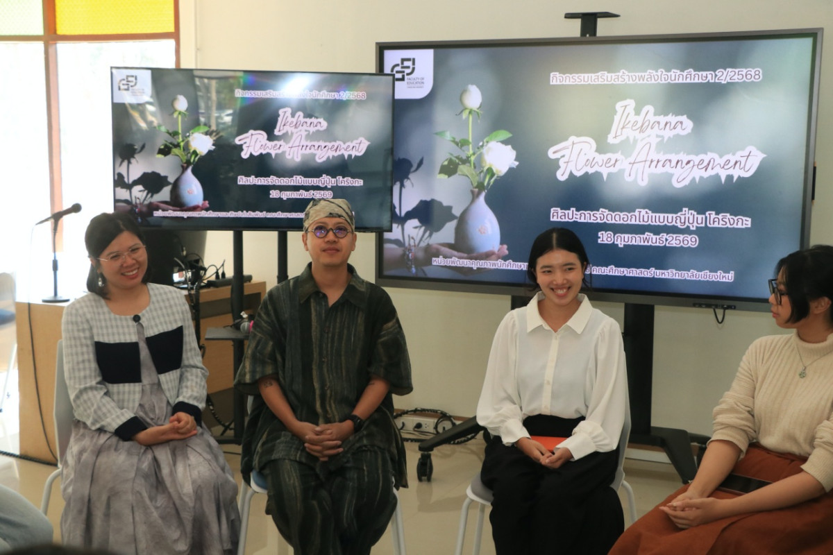 เมื่อวันพุธที่ 18 กุมภาพันธ์ 2569 หน่วยพัฒนาคุณภาพนักศึกษา งานบริการการศึกษาและพัฒนาคุณภาพนักศึกษา คณะศึกษาศาสตร์ มหาวิทยาลัยเชียงใหม่ ได้จัดกิจกรรม Workshop สุดพิเศษ "ศิลปะการจัดดอกไม้แบบญี่ปุ่น โคริงกะ (Kohrinka)" โดยมี รองศาสตราจารย์ ดร. อุไรวรรณ หาญวงค์ รองคณบดี ให้การต้อนรับวิทยากรและนักศึกษาที่เข้าร่วมกิจกรรม ณ หอเกียรติยศ คณะศึกษาศาสตร์ เพื่อเปิดพื้นที่ให้นักศึกษาได้สัมผัสกับความสงบและความงามผ่านธรรมชาติ