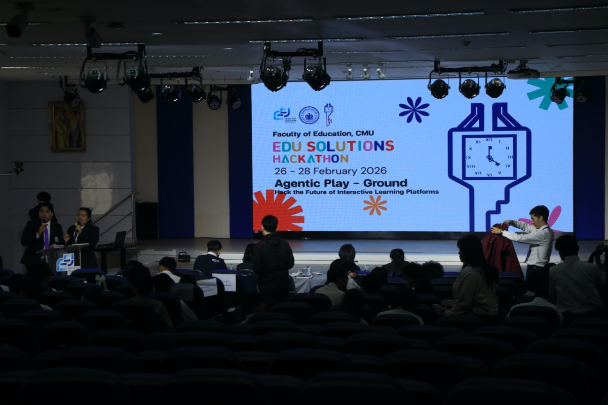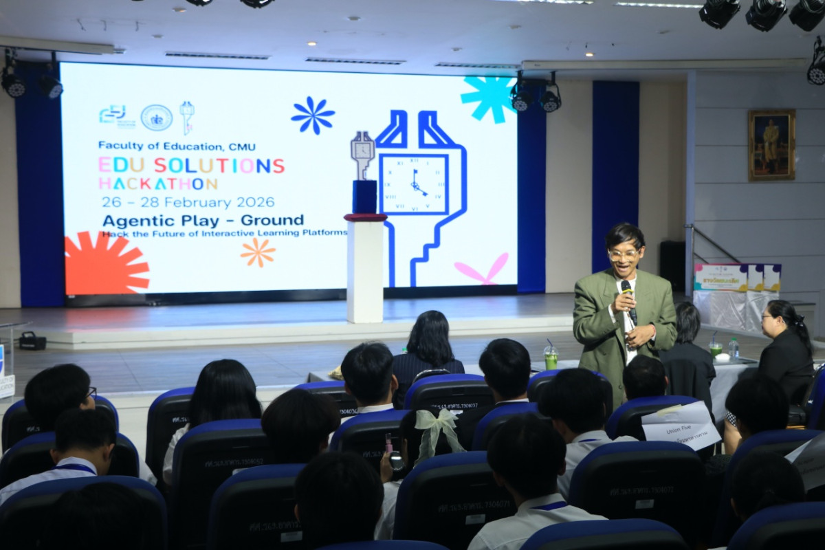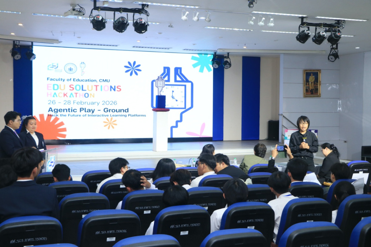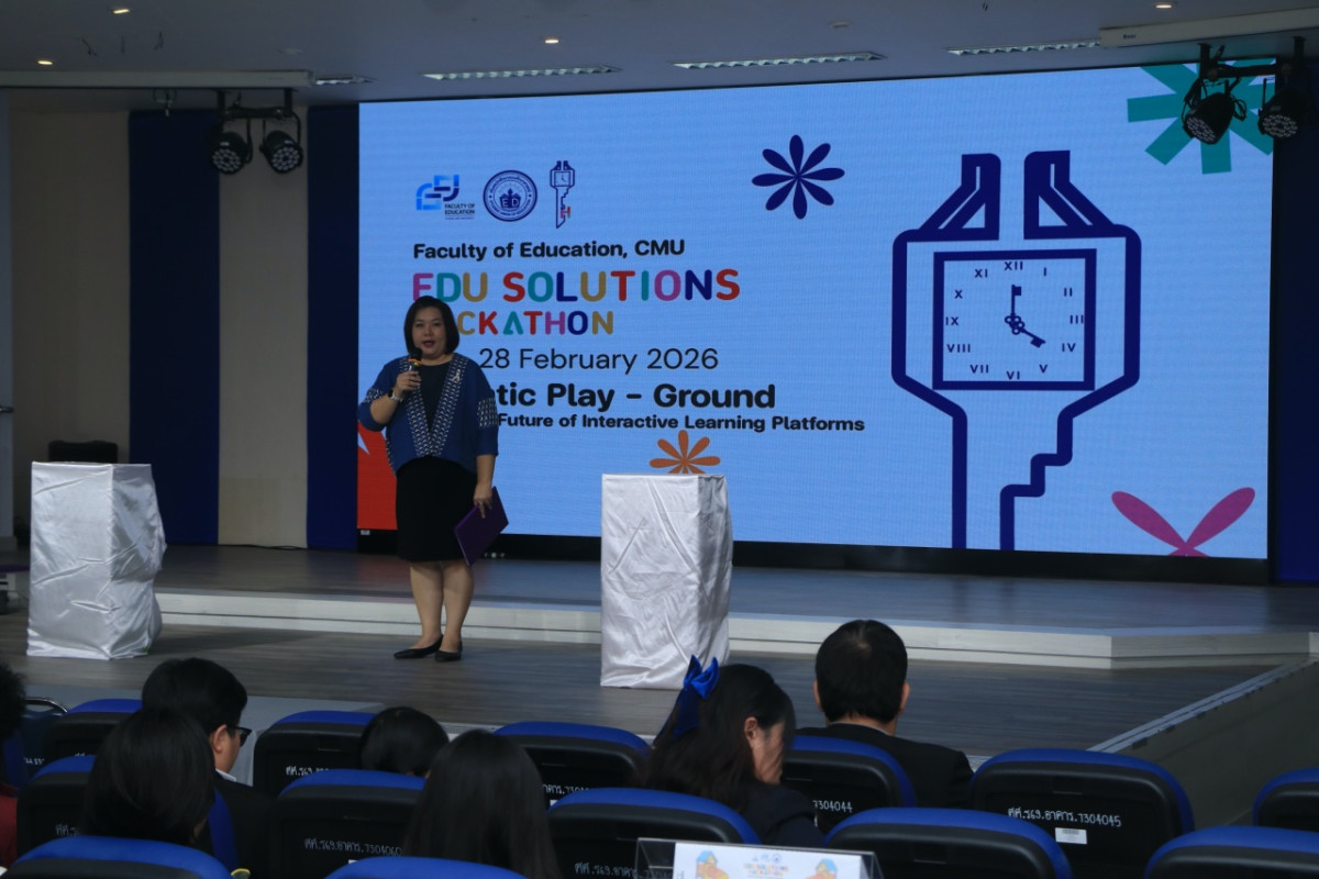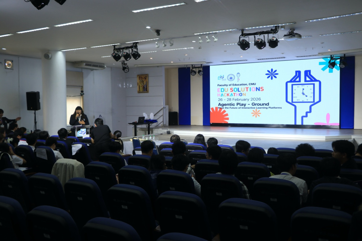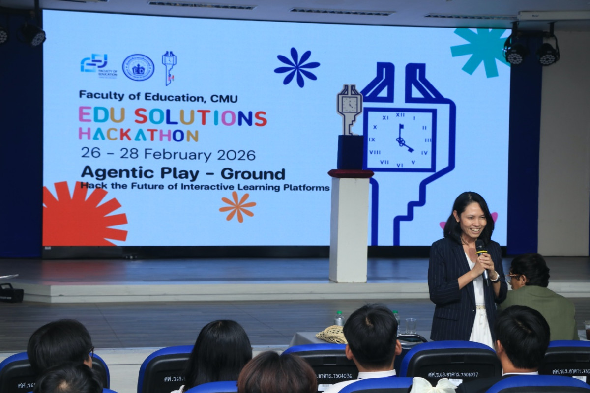 เมื่อวันเสาร์ที่ 28 กุมภาพันธ์ 2569 ผู้ช่วยศาสตราจารย์ ดร. ทิพย์รัตน์ นพฤทธิ์ คณบดีคณะศึกษาศาสตร์ มหาวิทยาลัยเชียงใหม่ เป็นประธานในพิธีเปิดการประกวดรอบนำเสนอผลงาน (Pitching Day) ในโครงการประกวดนวัตกรรมทางการศึกษาระดับอุดมศึกษา "EDU Solutions Hackathon the 1st" ณ ห้องประชุม 40 ปี อาคาร 4 คณะศึกษาศาสตร์ มหาวิทยาลัยเชียงใหม่ โดยมี นางสาวธันย์ชนก วรรณไทย เป็นผู้กล่าวรายงานวัตถุประสงค์ของการจัดงาน