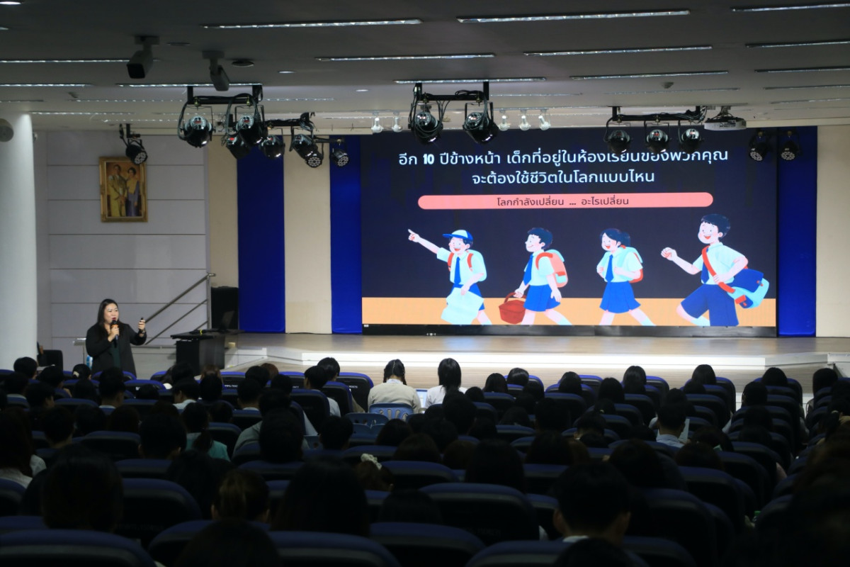 ช่วงที่ 1 | เวลา 08.00 – 12.00 น. นักศึกษากระบวนวิชา 100192 การปฏิบัติการสอนทางวิชาชีพครูในสถานศึกษา 1 จัดสัมมนาในหัวข้อ “อนาคตภาพการจัดการศึกษาไทย” เพื่อแลกเปลี่ยนมุมมอง แนวคิด และสะท้อนการเรียนรู้เกี่ยวกับทิศทางการศึกษาของไทยในอนาคต ทั้งด้านคุณภาพผู้เรียน บทบาทครู เทคโนโลยีทางการศึกษา และความเสมอภาคทางการศึกษา